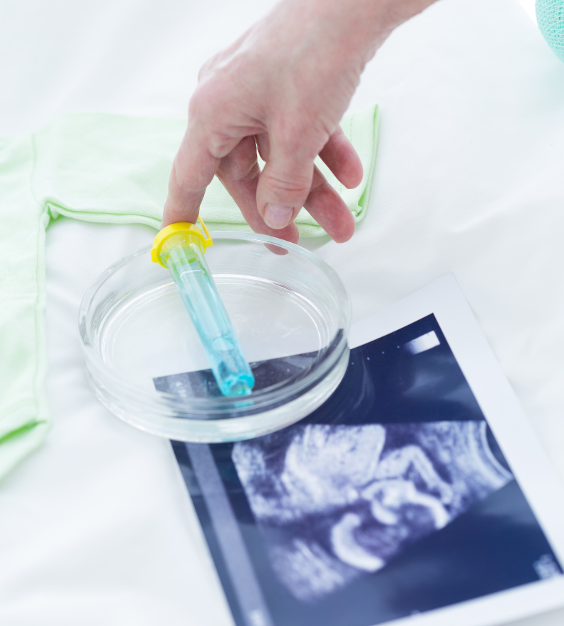 Toma de muestra del tejido placentario entre las semanas 11 y 14 del embarazo. Permite detectar alteraciones cromosómicas o genéticas del bebé de forma temprana, cuando existe un alto riesgo identificado en el tamizaje o antecedentes familiares.